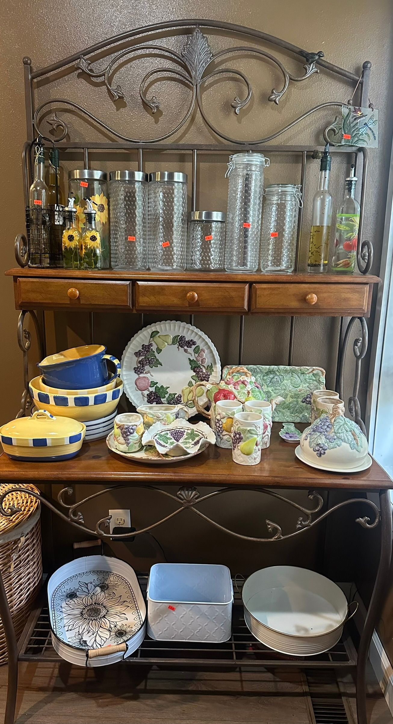 - wood/iron Bakers' rack